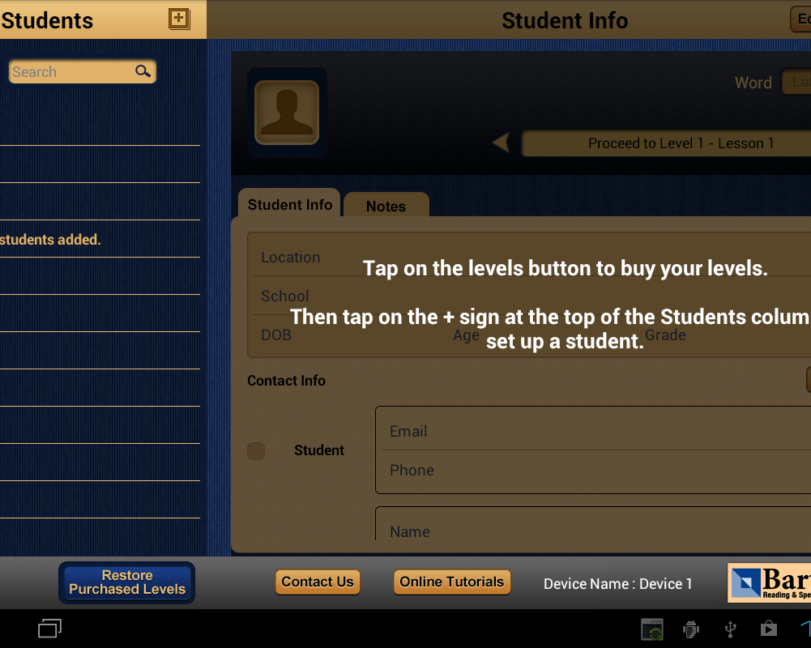 The Barton Tiles app is designed to save tutors using the Barton Reading & Spelling System at least 10 minutes each session. Words and tiles are pre-loaded for each lesson, and there’s no cumbersome tile cleanup. Student tracking functionality stores contact information, notes, current level, and lesson, and even a photo of each student.
