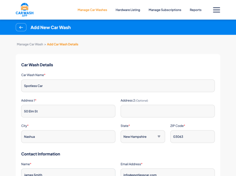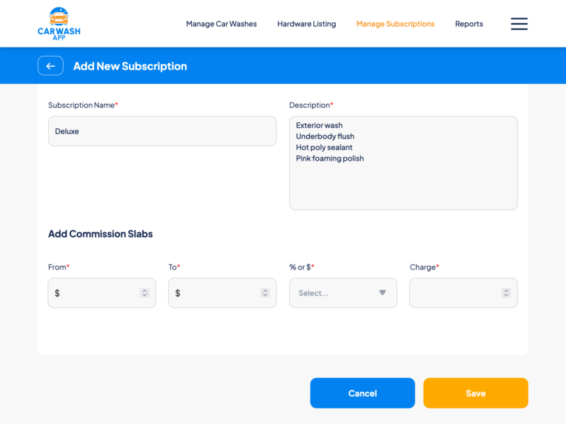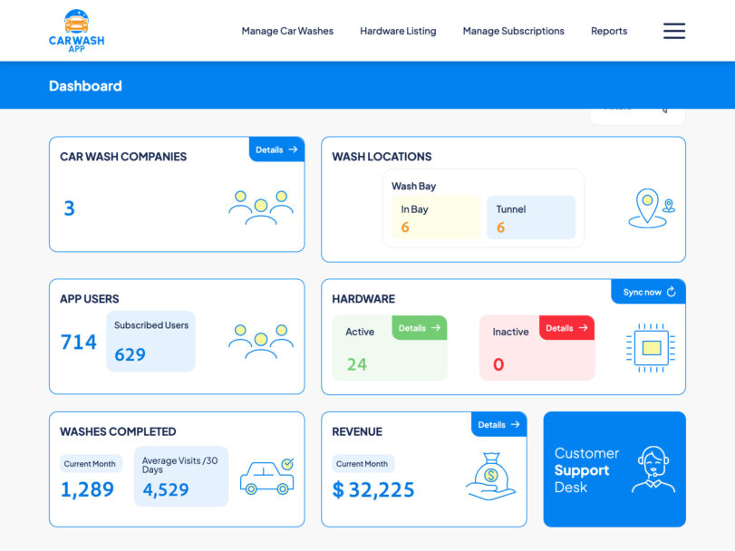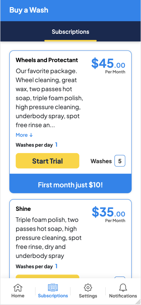 Owner Portal: Owners get access to a robust management system that can support multiple car washes. Owners can add or remove subscription options, create ads, manage customer subscriptions, view revenue reports, handle support tickets, and more.